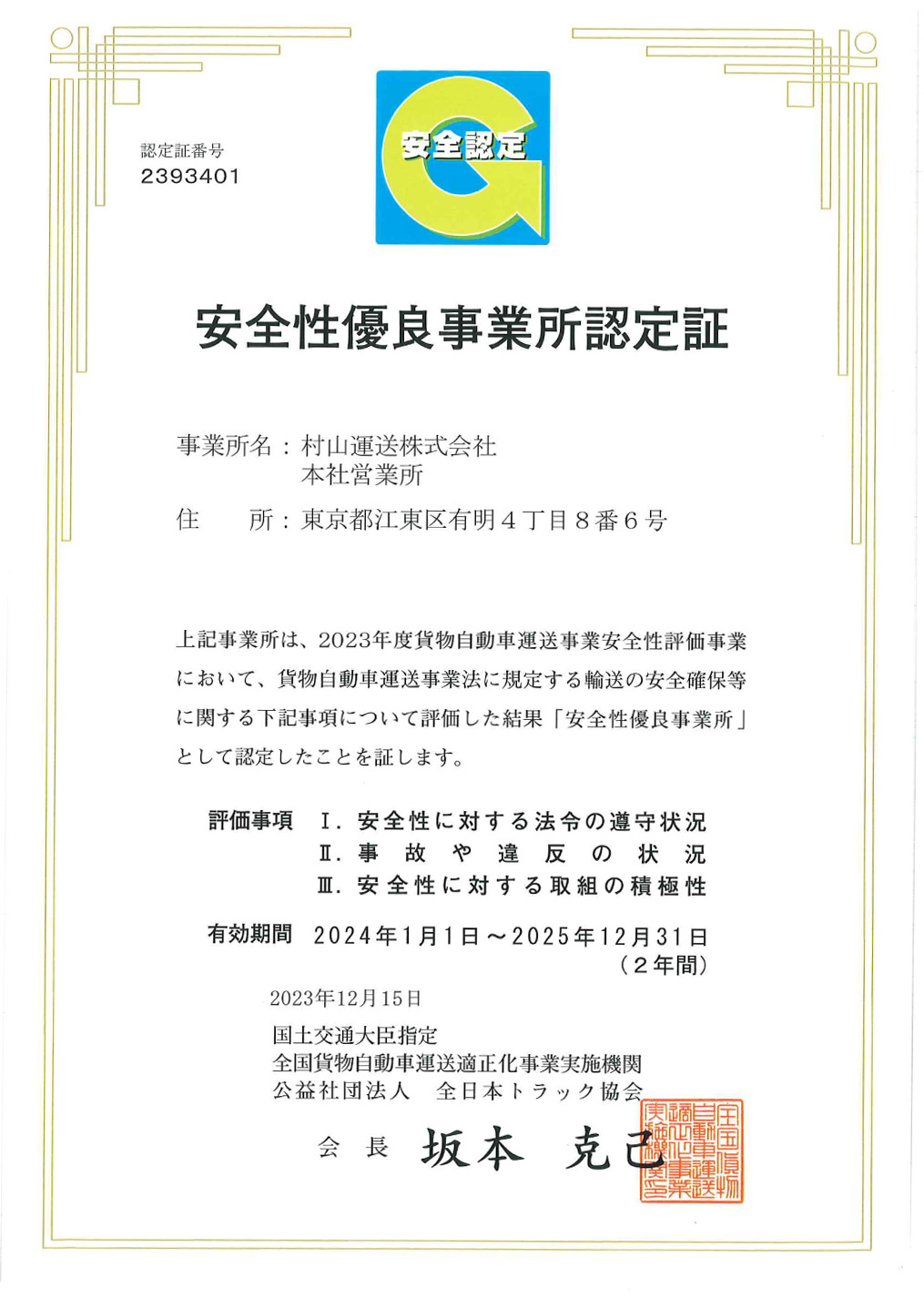 | 許認可 | 一般区域貨物自動車運送事業 83東陸自2貨2第1436号 |